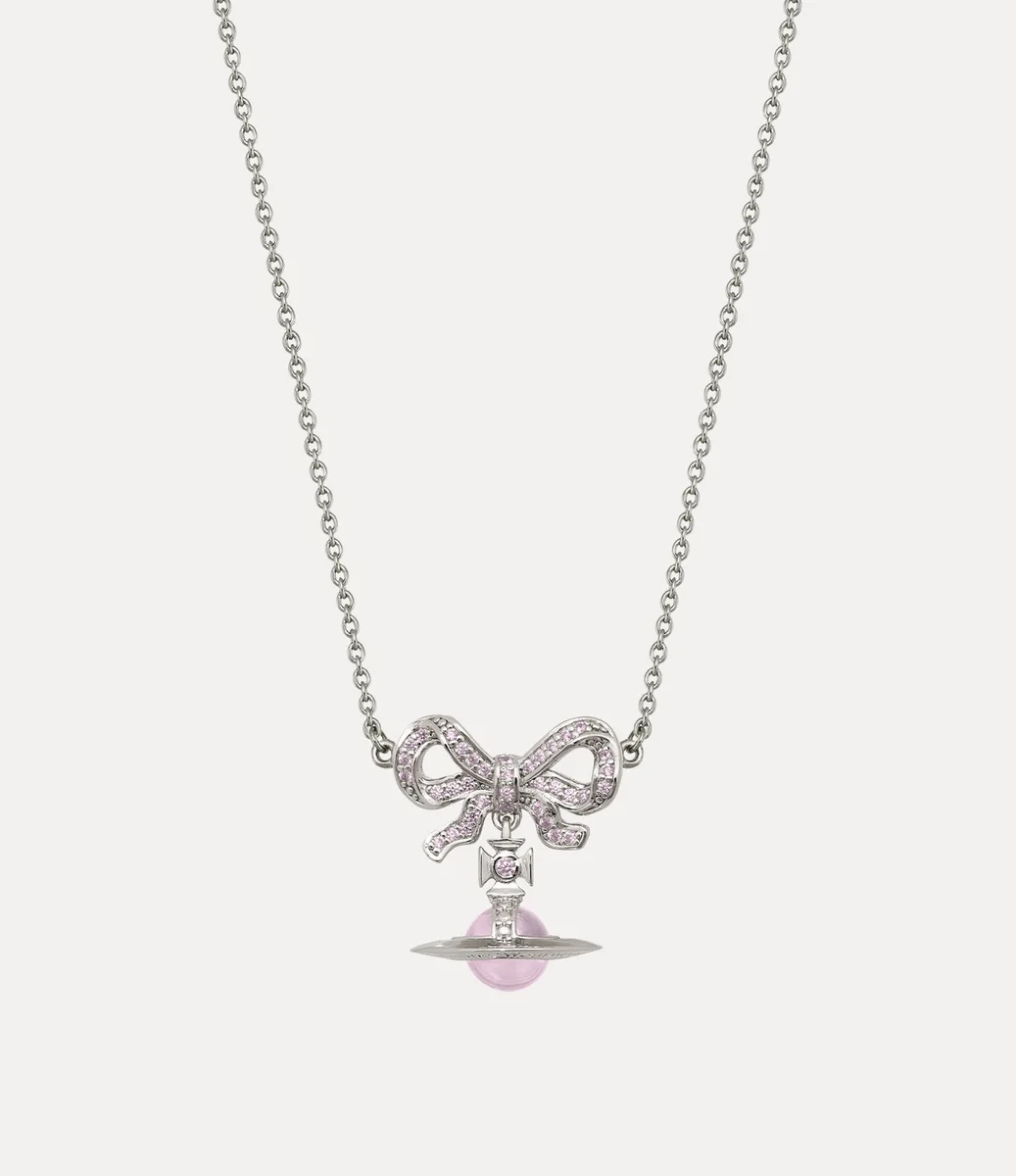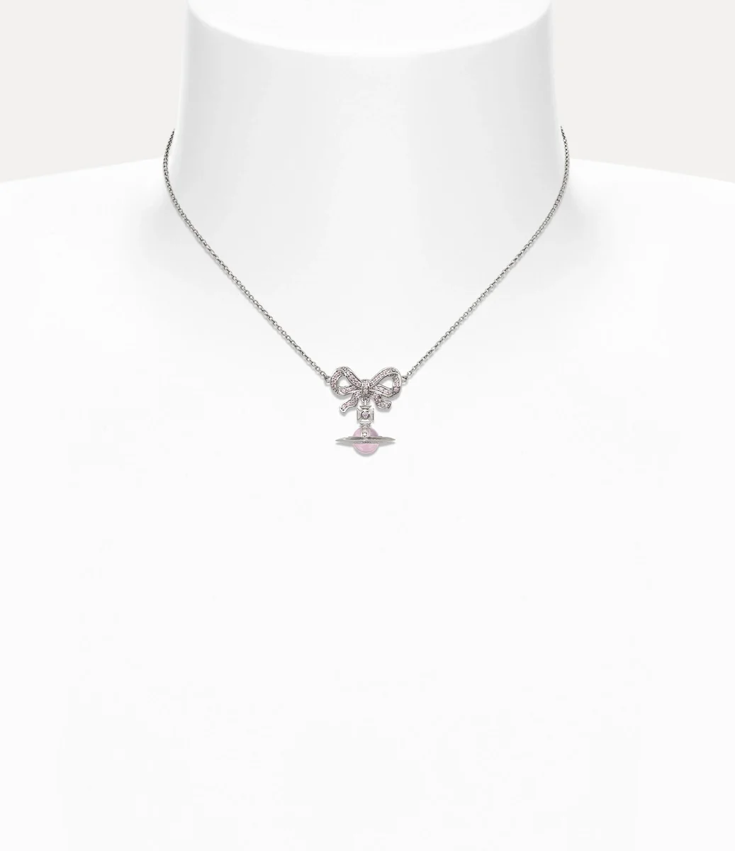 Octavie choker kolyemiz, Gürcü mücevherlerini anımsatan yay şeklindeki tasarımıyla, pembe kaplamalı pavé ayar parlak kristallerle süslenmiştir. Bu parça, merkezinde ince işçilikle yapılmış pembe bir taş bulunan, markamızın imzası niteliğindeki üç boyutlu sarkıt küre motifini içerir.
