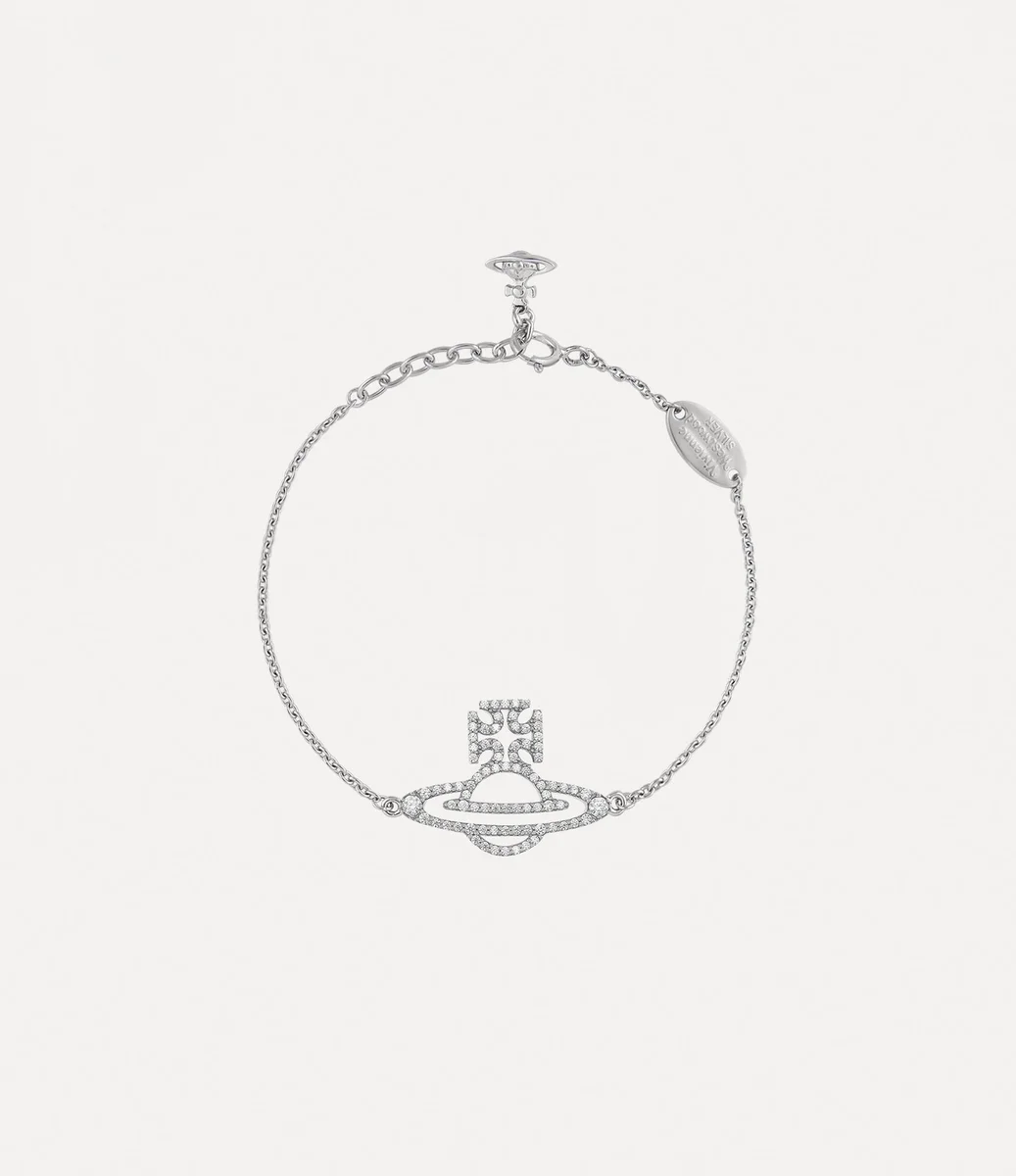Trudy bileziğimiz, Vivienne’in geleneği geleceğe taşıma vizyonunu anımsatan klasik küre motifimizi yeniden canlandırıyor. Tasarım, pavé kristallerle süslenmiş ve toka kısmında sallanan bir küre charm’ı bulunuyor. Tüm bunlar, ince bir zincirle zarif bir şekilde tamamlanıyor.p>