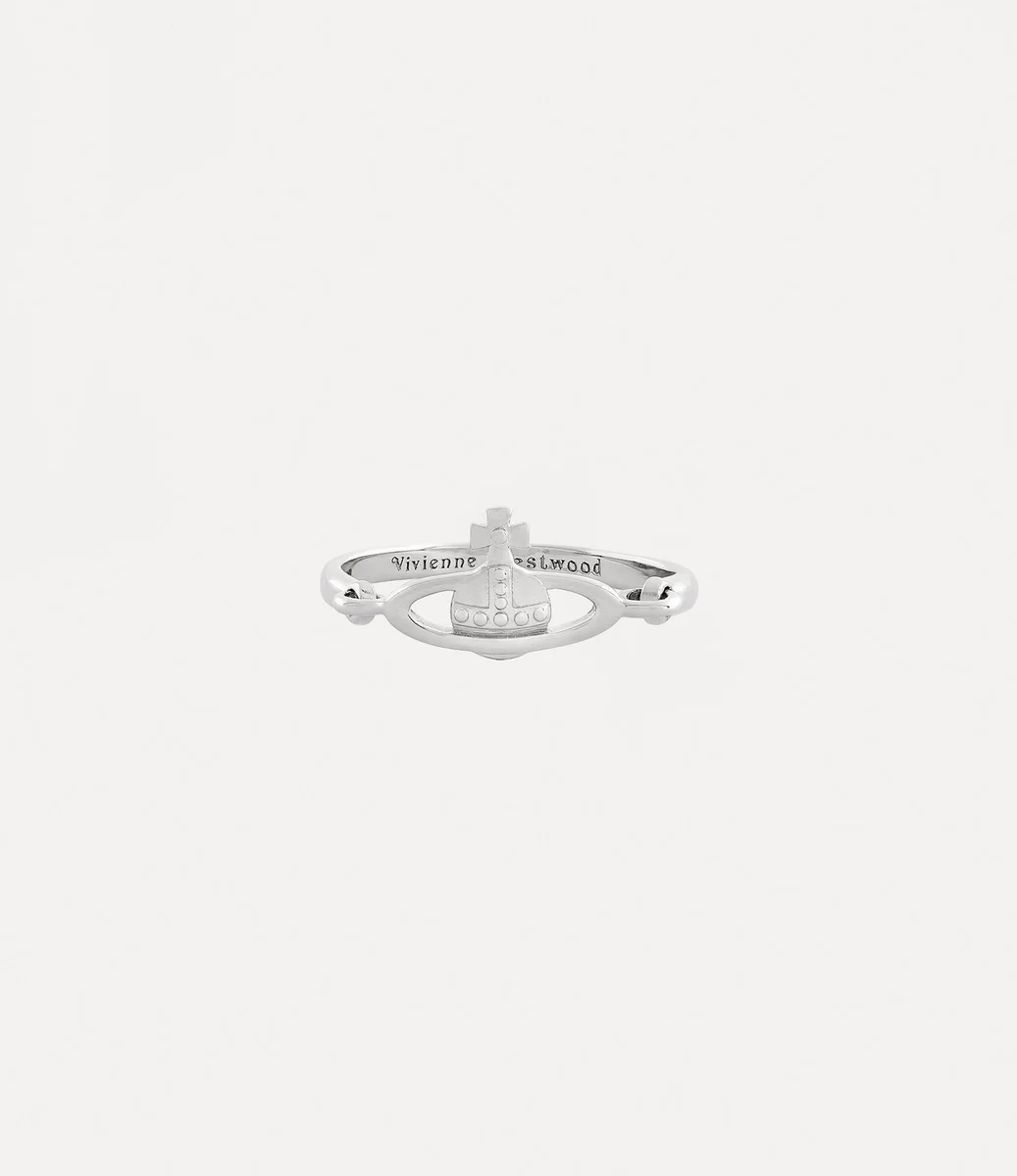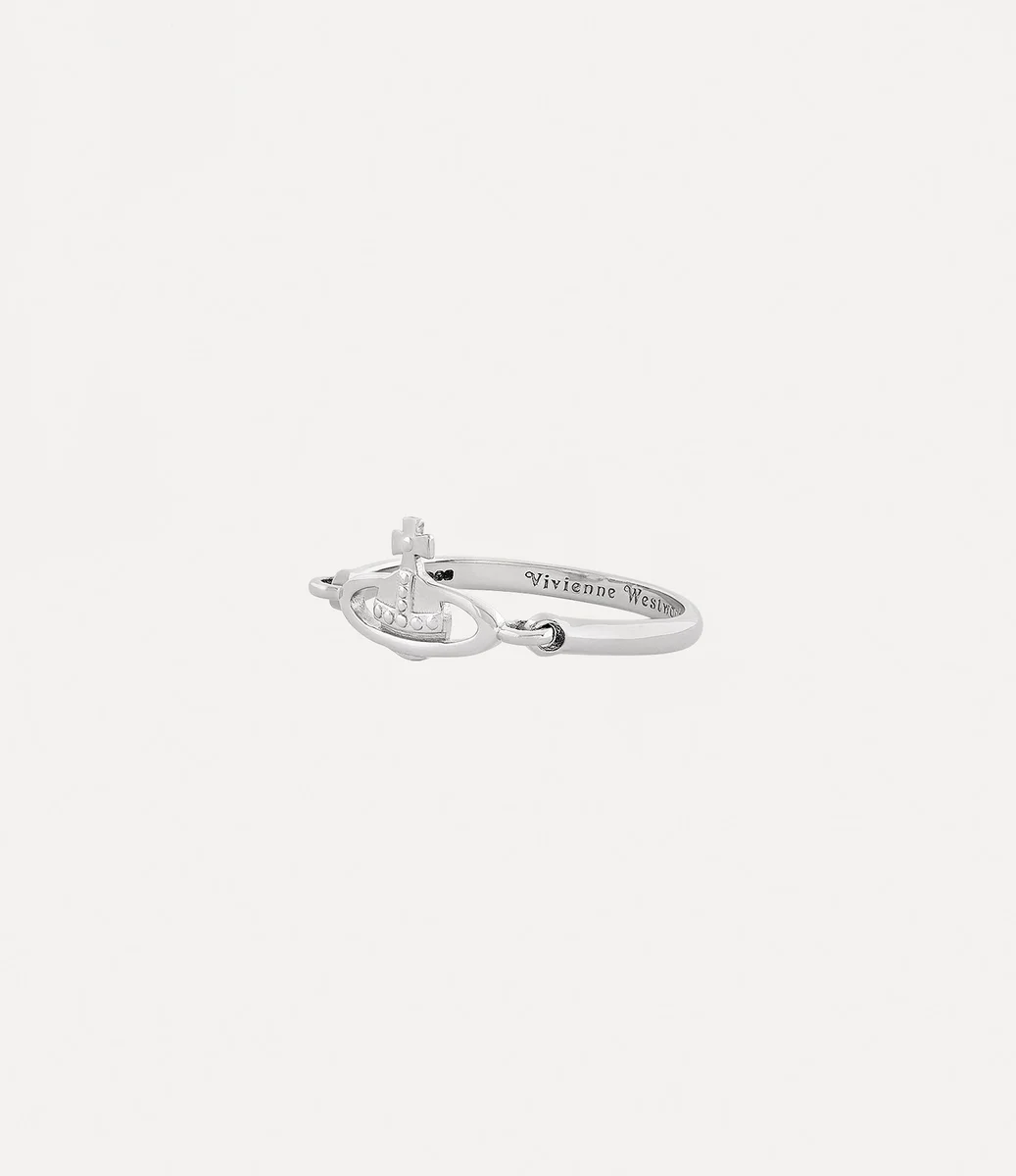 Platin kaplama gümüşten üretilen Vendome yüzüğümüz, zarif bantlı bir tasarıma sahiptir ve yüzünde menteşeler üzerinde dönebilen kesik küre motifi bulunur. Bu motif, Vivienne’in geleneği geleceğe taşıma vizyonunun bir simgesidir. Son olarak, parçanın iç kısmında markamızın imza niteliğindeki tipografi motifi yer almaktadır.