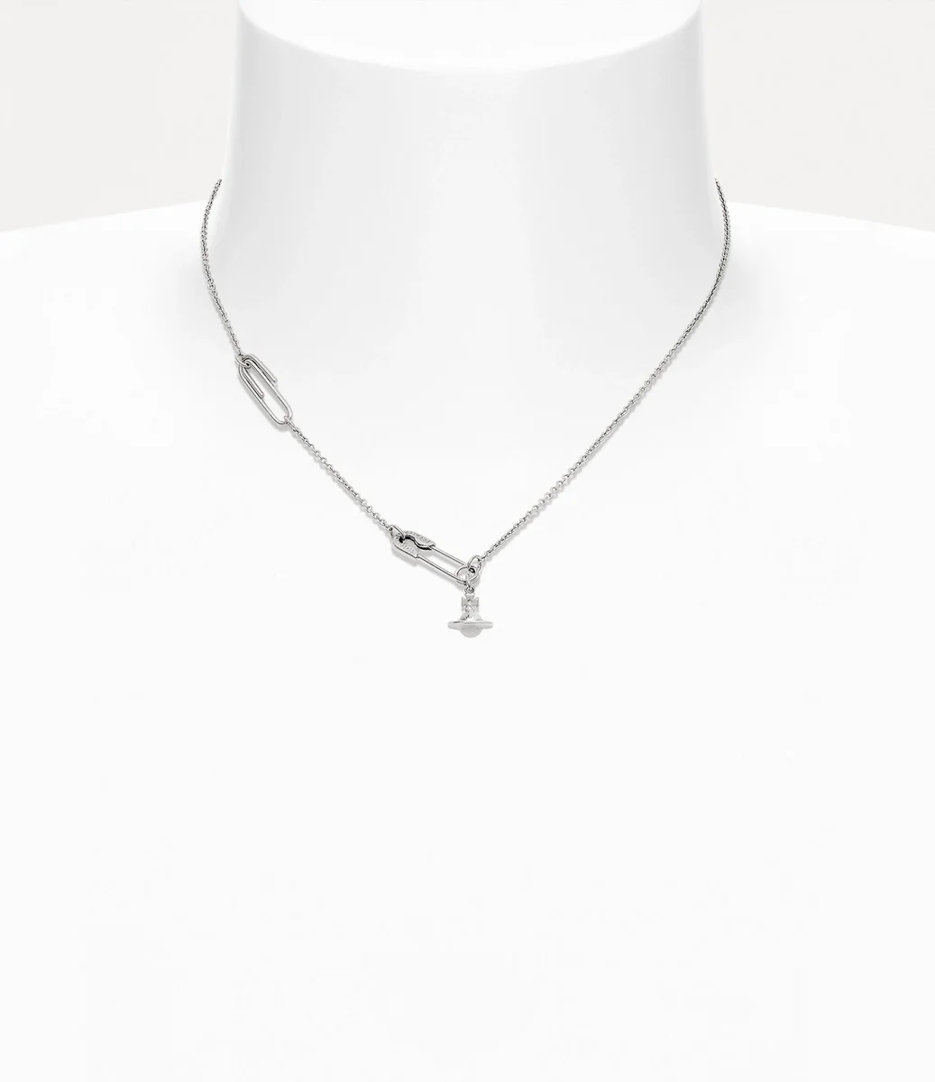 Emniyet pimi motifi, Vivienne’in imza niteliğindeki punk estetiğini çağrıştıran, markanın ikonografisinin vazgeçilmez bir parçasıdır. Bu sezonun Emniyet Pimi Kolye’sinin silueti, Vivienne’in geleneği geleceğe taşıma vizyonunun simgesi olan klasik sarkıt küre ile tamamlanarak bu motifi yeniden canlandırıyor.