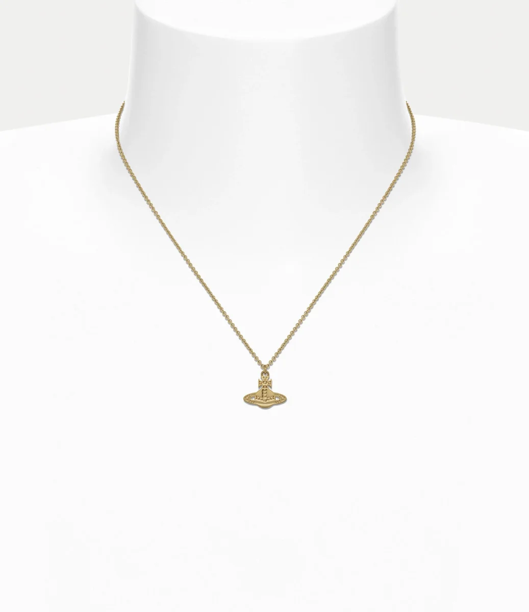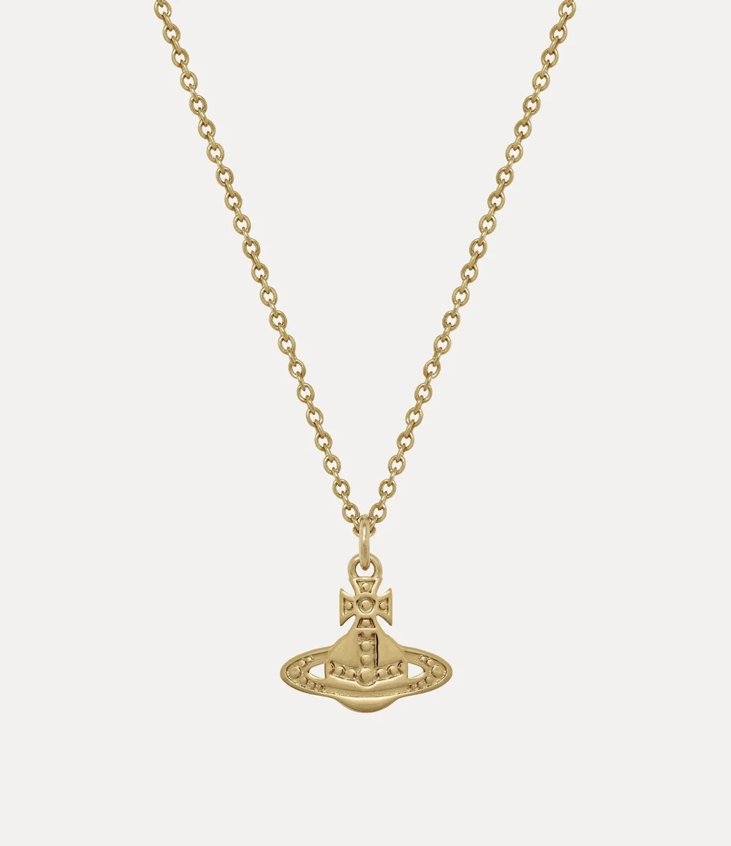 Marinetta Kolye, altın rengi metalden üretilmiş olup, markanın klasik küre motifini merkezine almaktadır. Kolye, el yapımı bir his uyandıran hafifçe bastırılmış, boncuk benzeri bir dokuya sahiptir, oyulmuş detaylar ise haç şeklindeki üst kısmın ve Satürn halkasının konturlarını vurgulamaktadır.