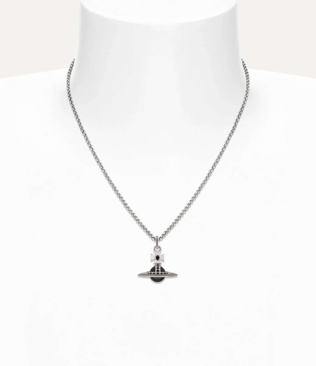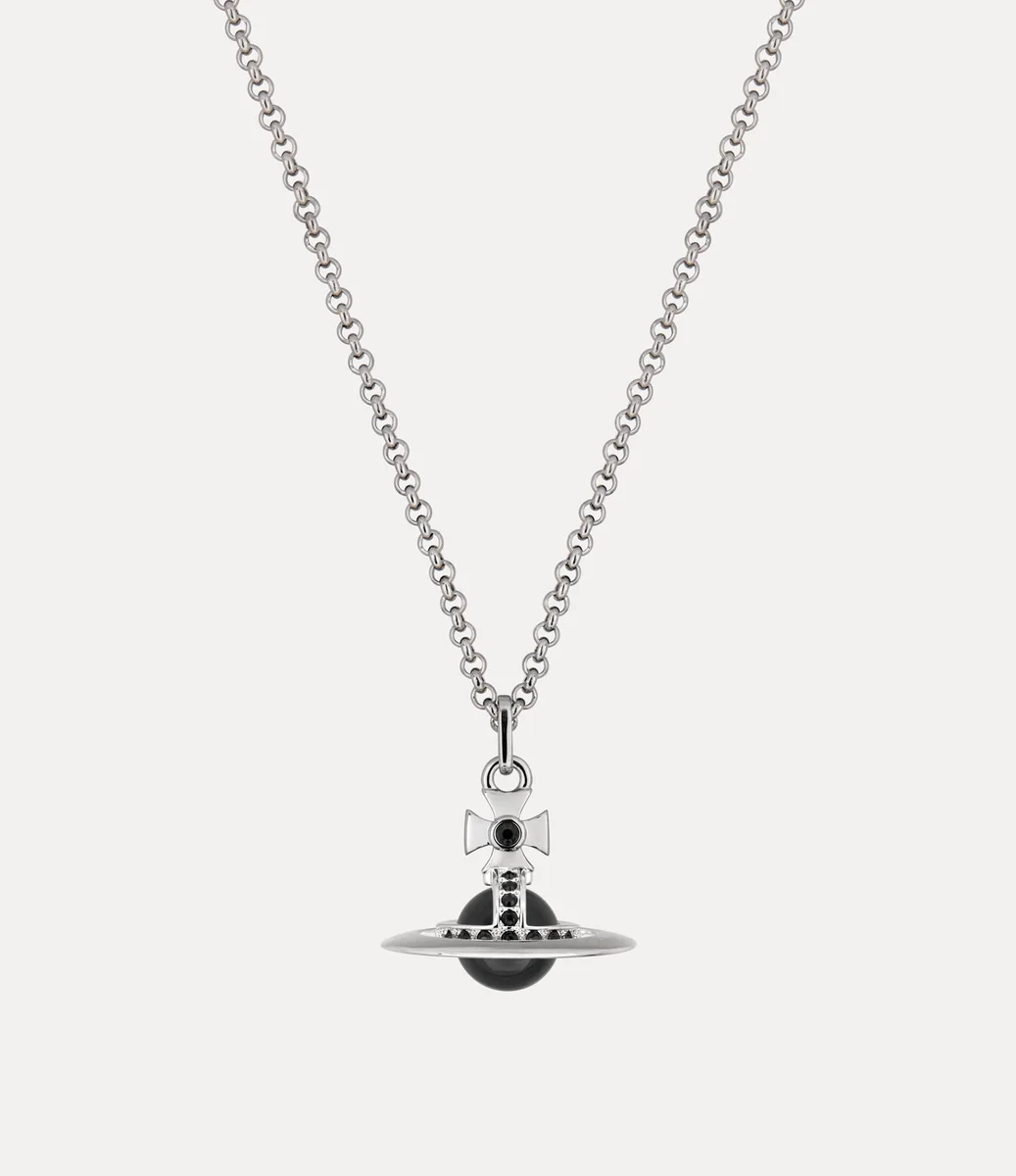 İmzamız olan New Tiny Orb Pendant kolye, bu sezon merkezinde küresel siyah bir taşla yeniden tasarlandı. Çapraz üst kısımda ve küre motifinde tonlu kristallerle detaylandırılan tasarım, imzalı donanım ve güvenli karabina tokalı, harf oyulmuş oval etiketle tamamlanıyor.