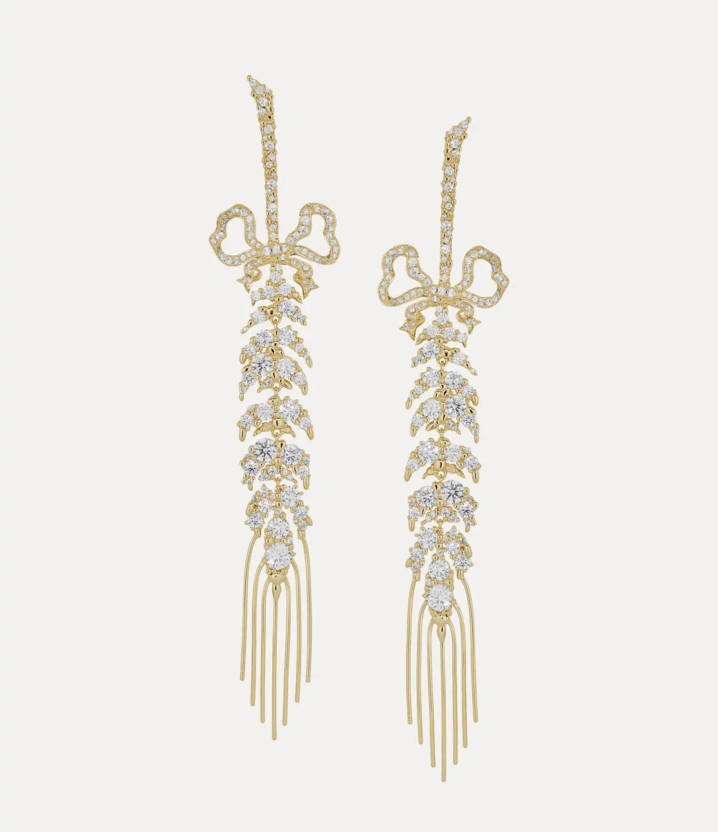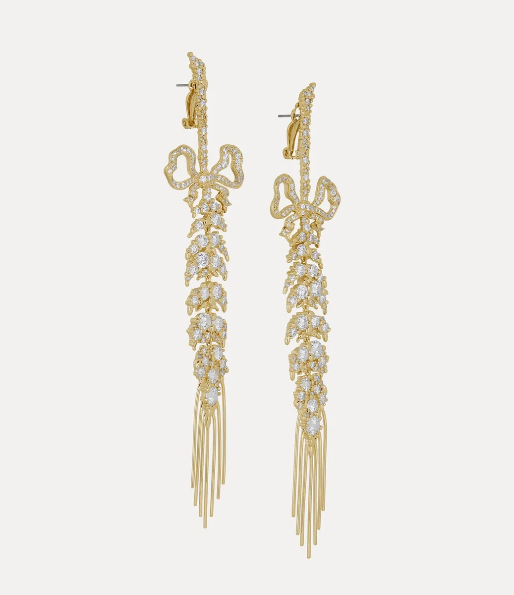 Chloris küpeler, Yunan mitolojisinden ilham alır ve refah, bereket ve bolluğun zamansız sembolü olan narin buğday motifini merkezine alan karmaşık bir damla silueti içerir. Georgian mücevherlerini anımsatan markanın imza niteliğindeki yay şeklini içeren tasarım, ışıltılı pavé kristallerle süslenmiştir.