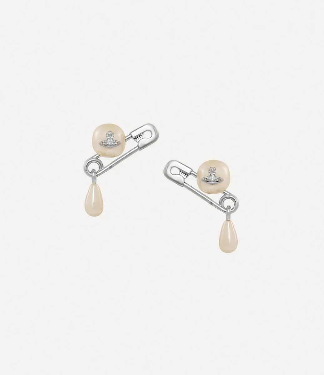 Gümüş tonlu Claude Small Stud küpelerimiz, merkezinde küre detayı bulunan yuvarlak bir inciye sahiptir ve markanın punk estetiğini yansıtan klasik bir emniyet pimi motifiyle zenginleştirilmiştir. Tasarım, özel kelebek sırtlı kapamalarla tamamlanan zarif bir barok inci damlası sunar.
