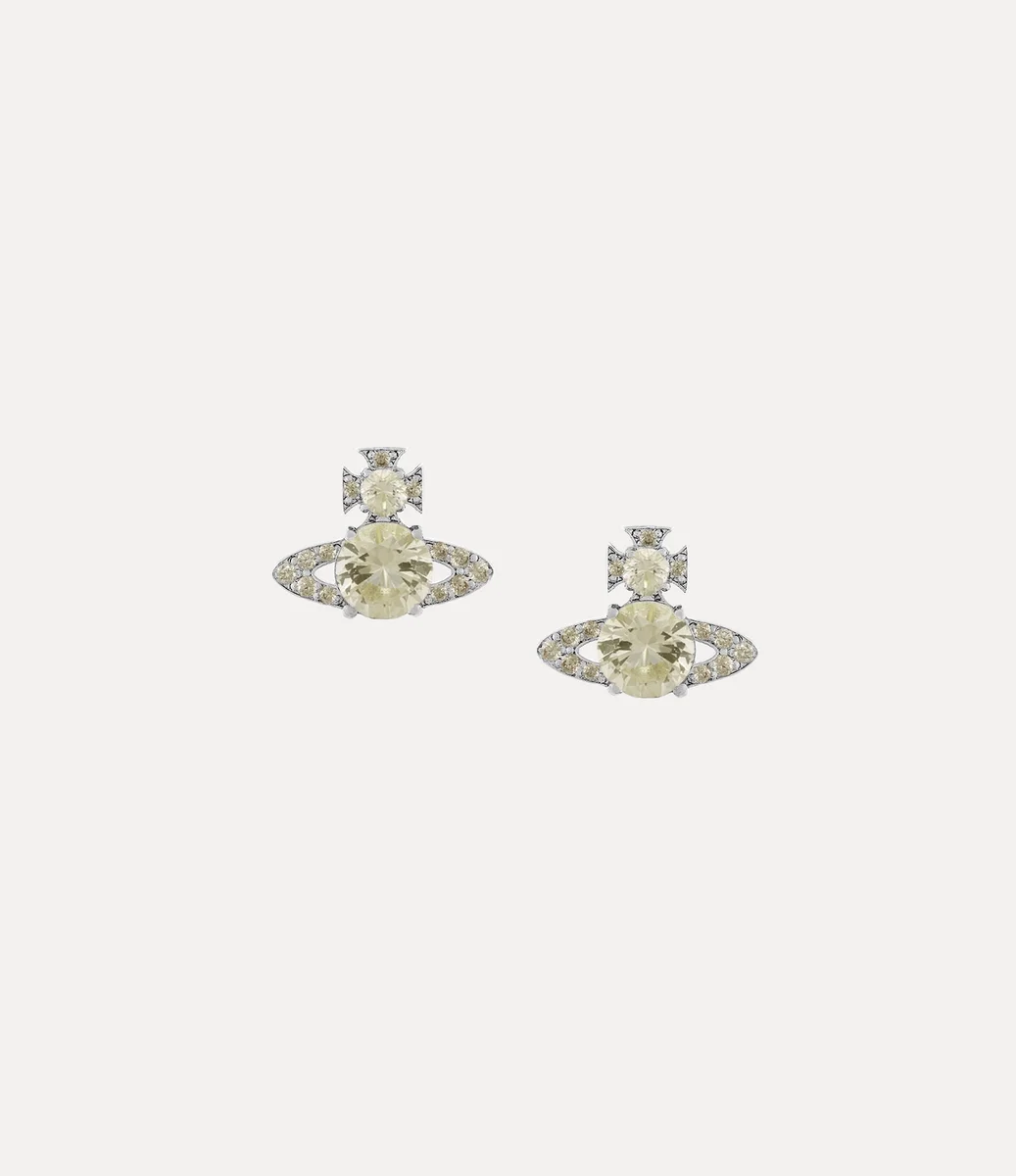 Ismene küpelerimiz, cilalı gümüş tonlu kaplama ve sarı kristal detaylarla bu sezon geri dönüyor. Küre silueti, Vivienne’in geleneği geleceğe taşıma vizyonunun simgesi olan markanın imza küre motifinden ilham alıyor.