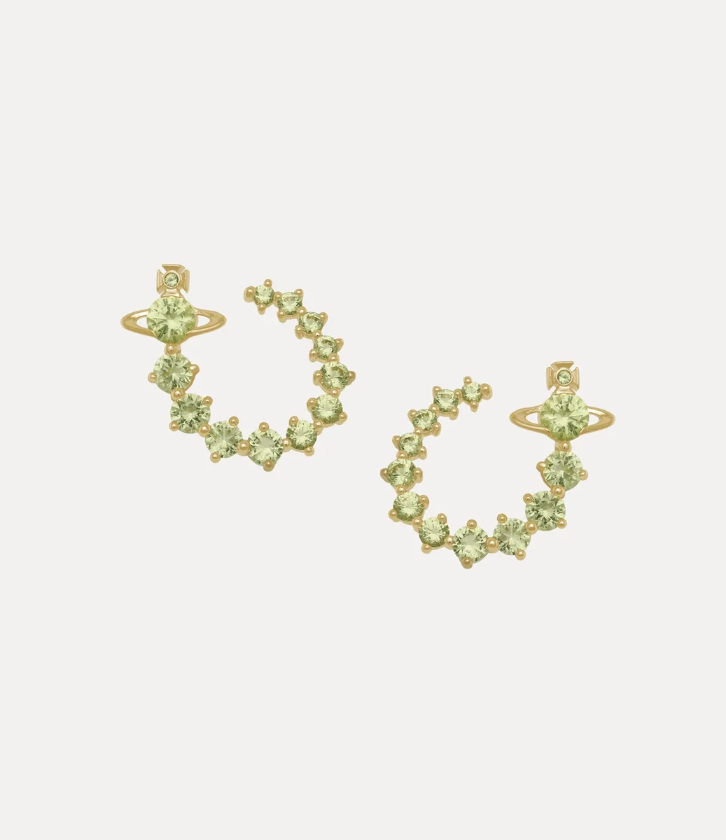 Cilalı altın kaplama ile üretilen Lydia küpelerimiz, kulak memesini nazikçe sararak heykelsi bir halka illüzyonu yaratır. Zarif bir şekilde incelen kübik zirkon taşlarla süslenen tasarım, Vivienne’in geleneği geleceğe taşıma vizyonunu yansıtan zamansız küre amblemimizle bezenmiştir.