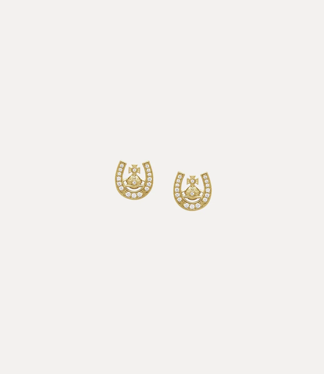 Mare küpelerimiz, iyi şans ve korumanın sembolü olan merkezi at nalı motifiyle çevrili altın tonlu bir küre ile markanın imza ikonografisini yeniden yorumluyor. İnce bir ışıltı için tonlu kristallerle süslenen bu parça, klasik küre şeklindeki kelebek sırtlı kapama ile tamamlanıyor.