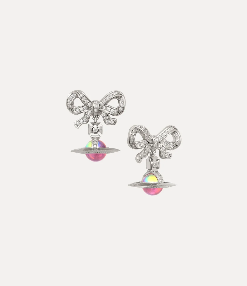 Octavie küpelerimiz geri dönüştürülmüş gümüşten üretilmiş ve cilalı platin tonlu kaplama ile tamamlanmıştır. Parlak beyaz kristallerle süslenmiş tasarım, Gürcü tarzı bir fiyonk ile merkezinde pembe yanardöner kaplamalı, markanın klasik küre motifini yansıtan üç boyutlu küreyi bir araya getirir.
