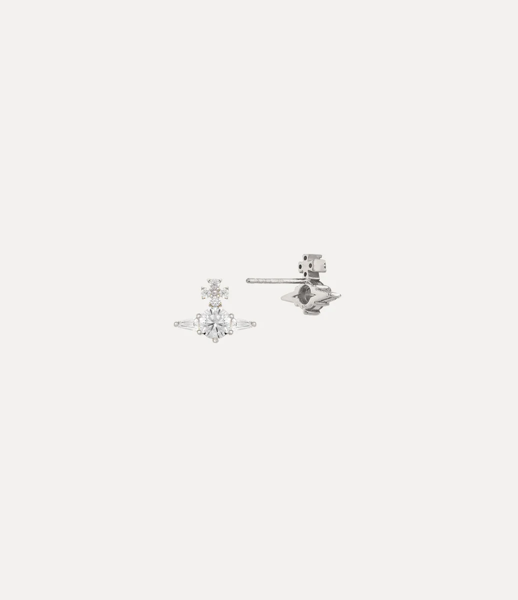 Ofelia küpelerimiz, markamızın imza niteliğindeki küre şeklindeki motifinden ilham alan platin tonlu küre silüetine sahiptir. Parlak yuvarlak ve konik kübik zirkon baget kristallerle süslenmiş tasarım, Vivienne’in geleneği geleceğe taşıma vizyonunu yansıtmaktadır.