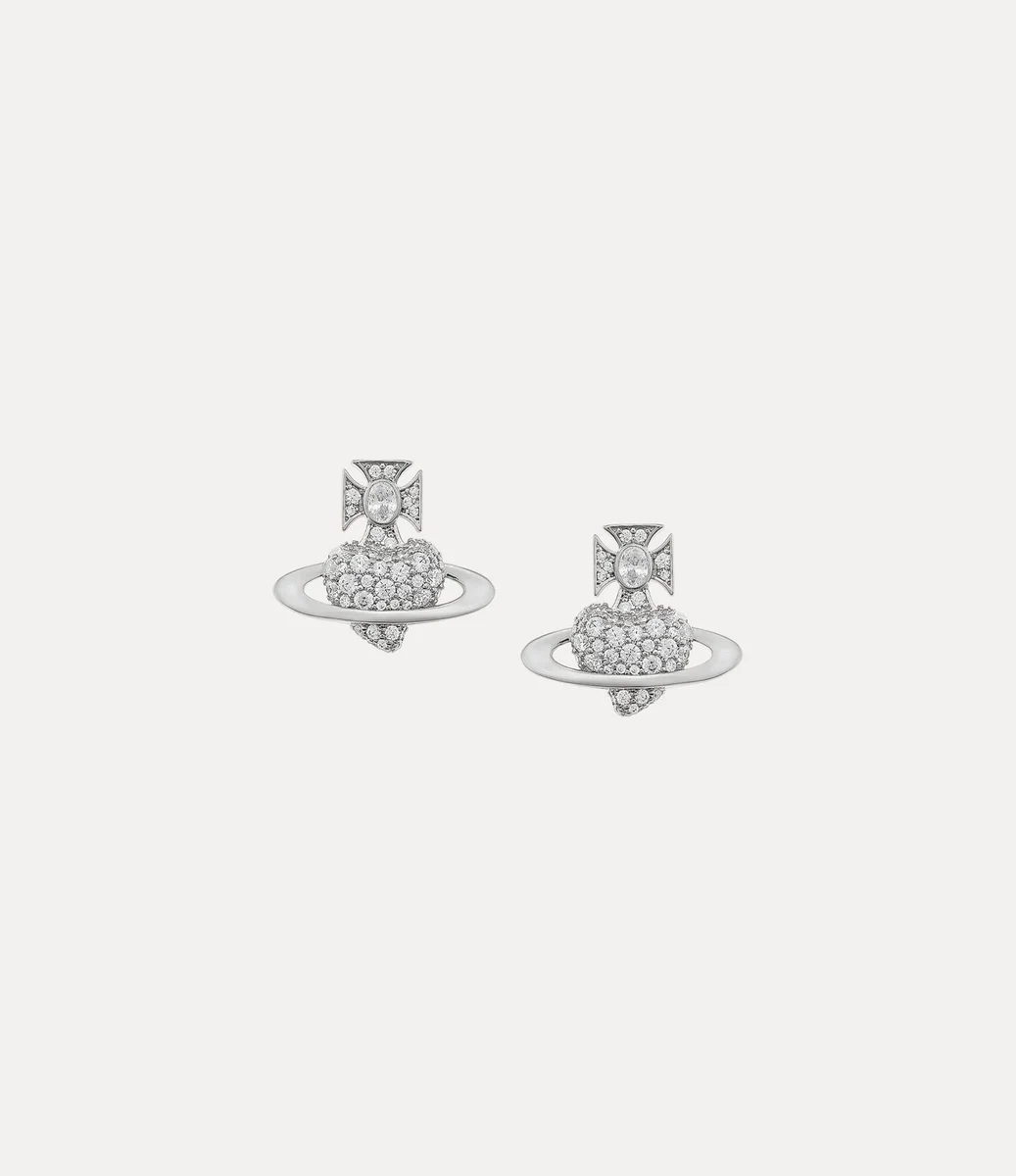 Valentine’s Agnatha küpeler, Vivienne’in insanlığa ve gezegene olan sevgisinin sembolü olan asimetrik kalp siluetine sahiptir. Parça, beyaz tonlarda ışıltılı kristal süslemelerle bezenmiş, cilalı gümüş tonlu kaplama ile süslenmiş ve Satürn’ün göksel halkası içinde el boyaması beyaz emaye detaylarla tamamlanmıştır.