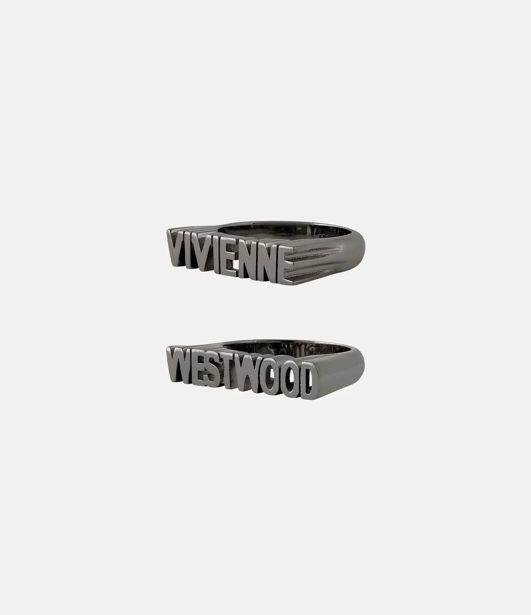 Essex yüzüğümüz geri dönüştürülmüş gümüşten üretilmiş ve cilalı tunç tonlu kaplama ile tamamlanmıştır. Biri “Vivienne”, diğeri “Westwood” yazan iki cesur, tamamen metal banttan oluşan tasarım, her bir harfin konturlarını izleyen karmaşık kesik detaylarla vurgulanmıştır.